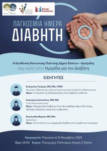 Η Διεύθυνση Κοινωνικής Πολιτικής του Δήμου Σπάτων – Αρτέμιδος διοργανώνει ενημερωτική ημερίδα με αφορμή την Παγκόσμια Ημέρα Διαβήτη.